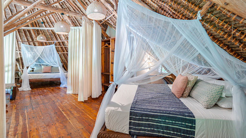 All bedrooms, except the open-plan room, are air-conditioned. All beds are fitted with mosquito nets and ceiling fans.